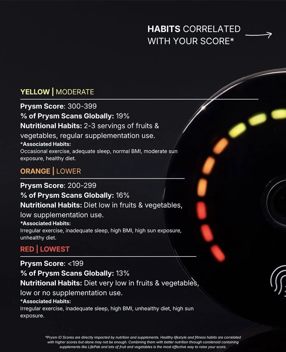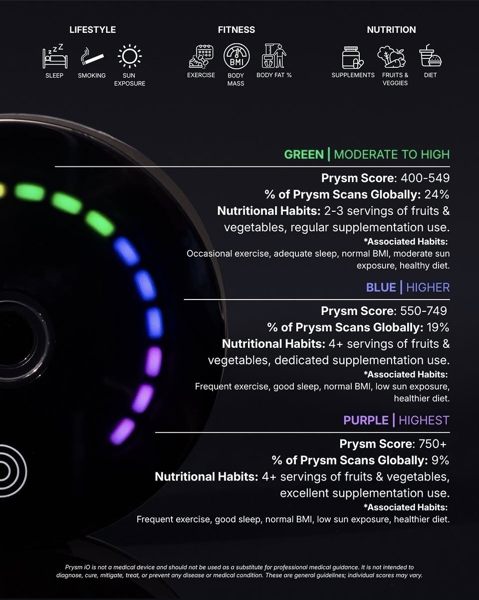• Carotenoid measurement using Prysm iO bio-photonic technology